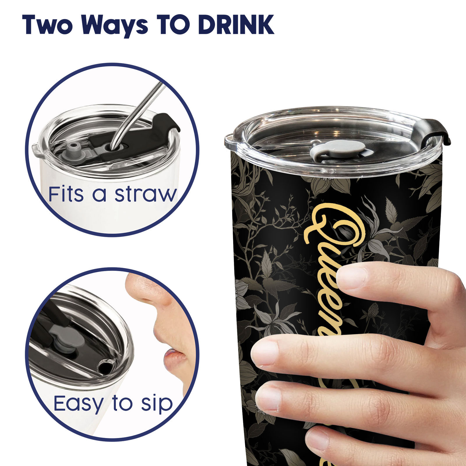 Black Floral Tumbler