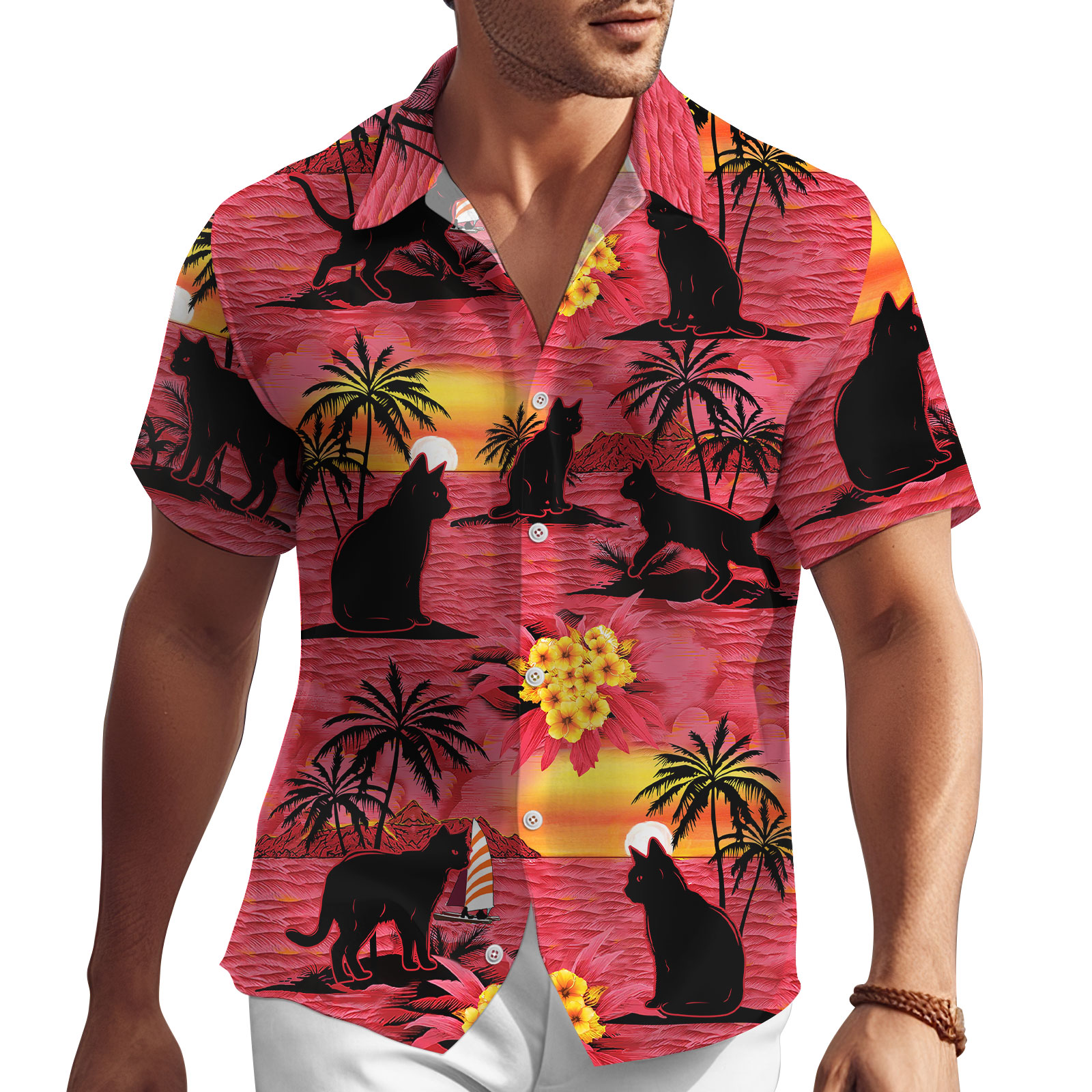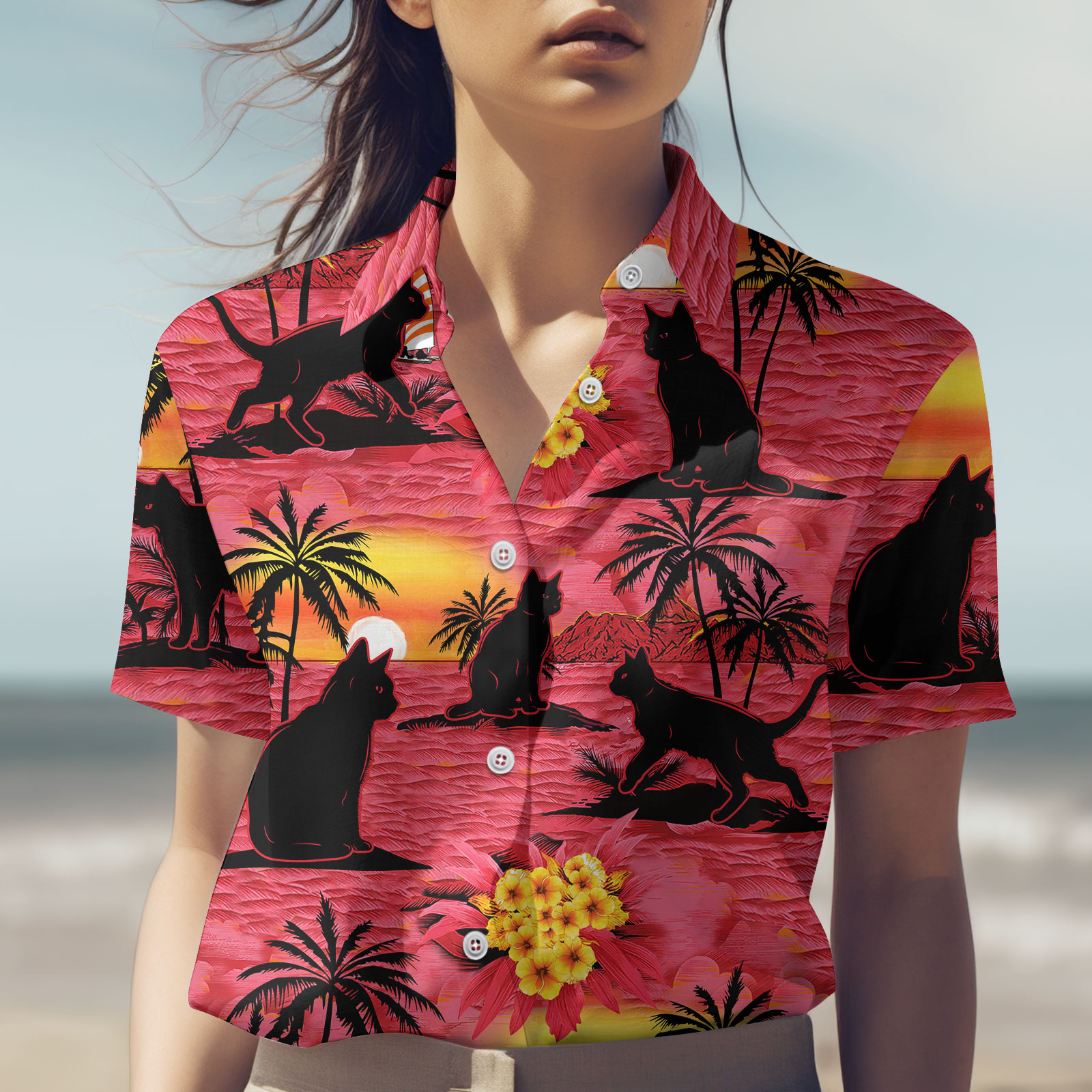 Cat Sunset Haiwaiian Shirt