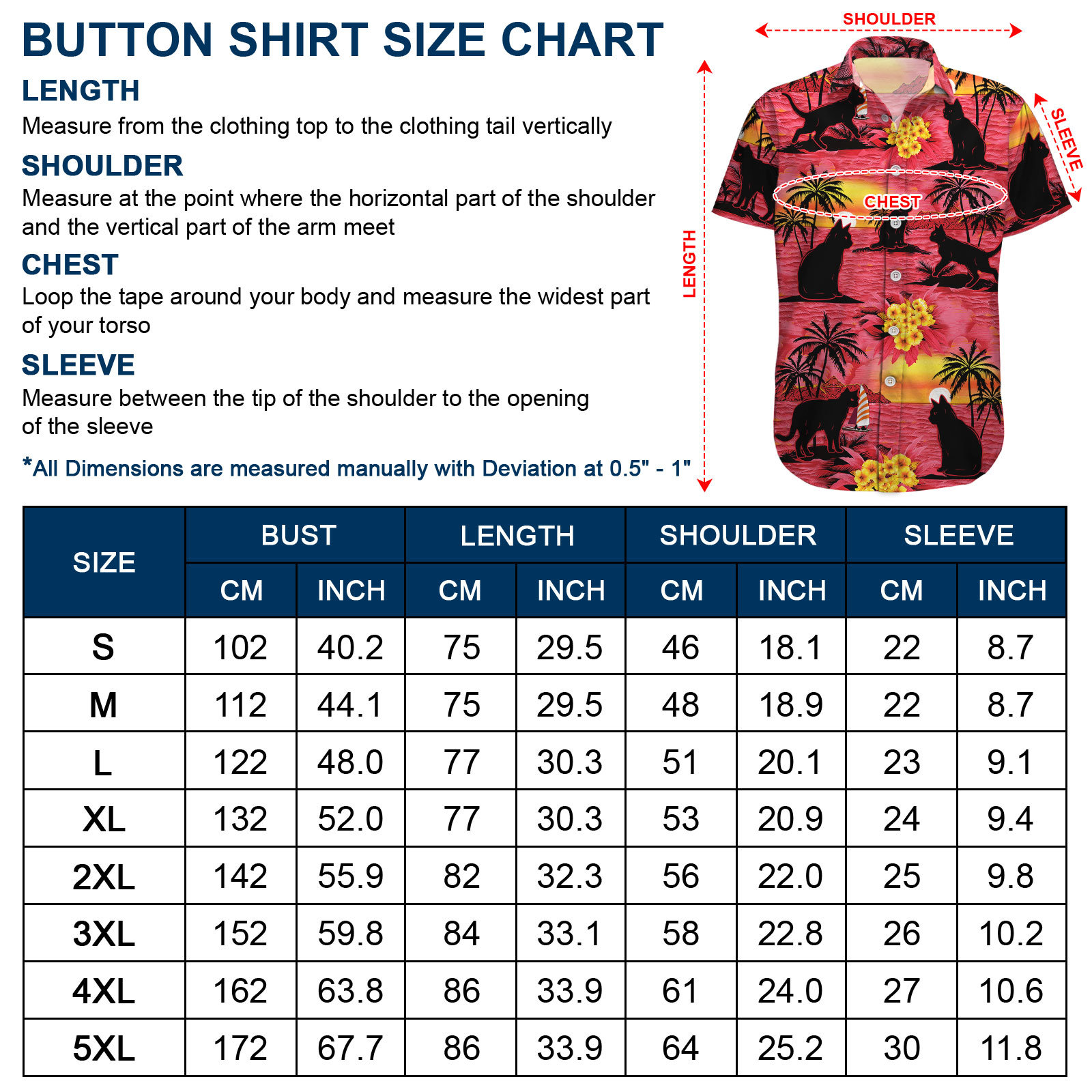 Size Shirt Length Chest Width Sleeve Length