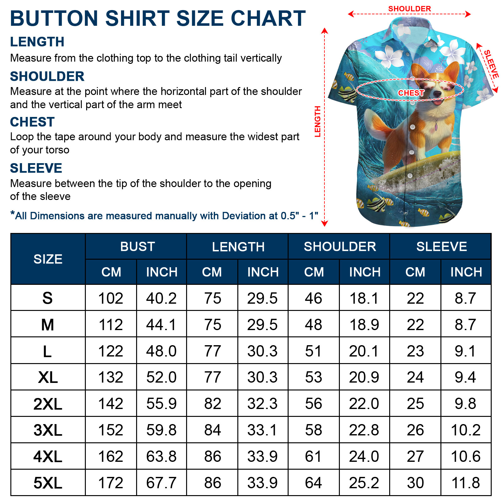 Size Shirt Length Chest Width Sleeve Length