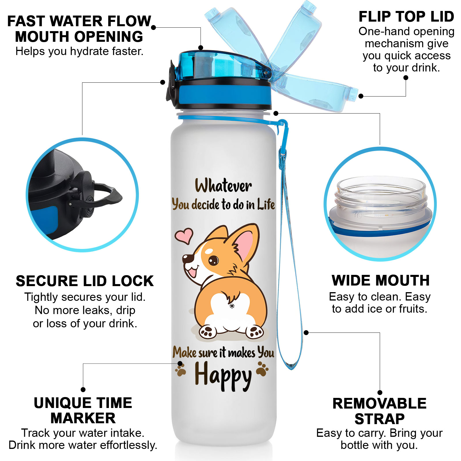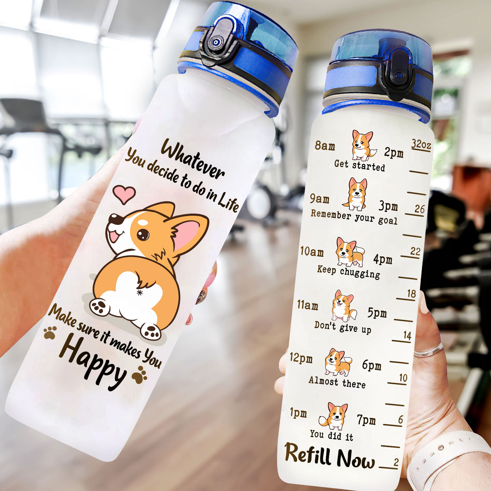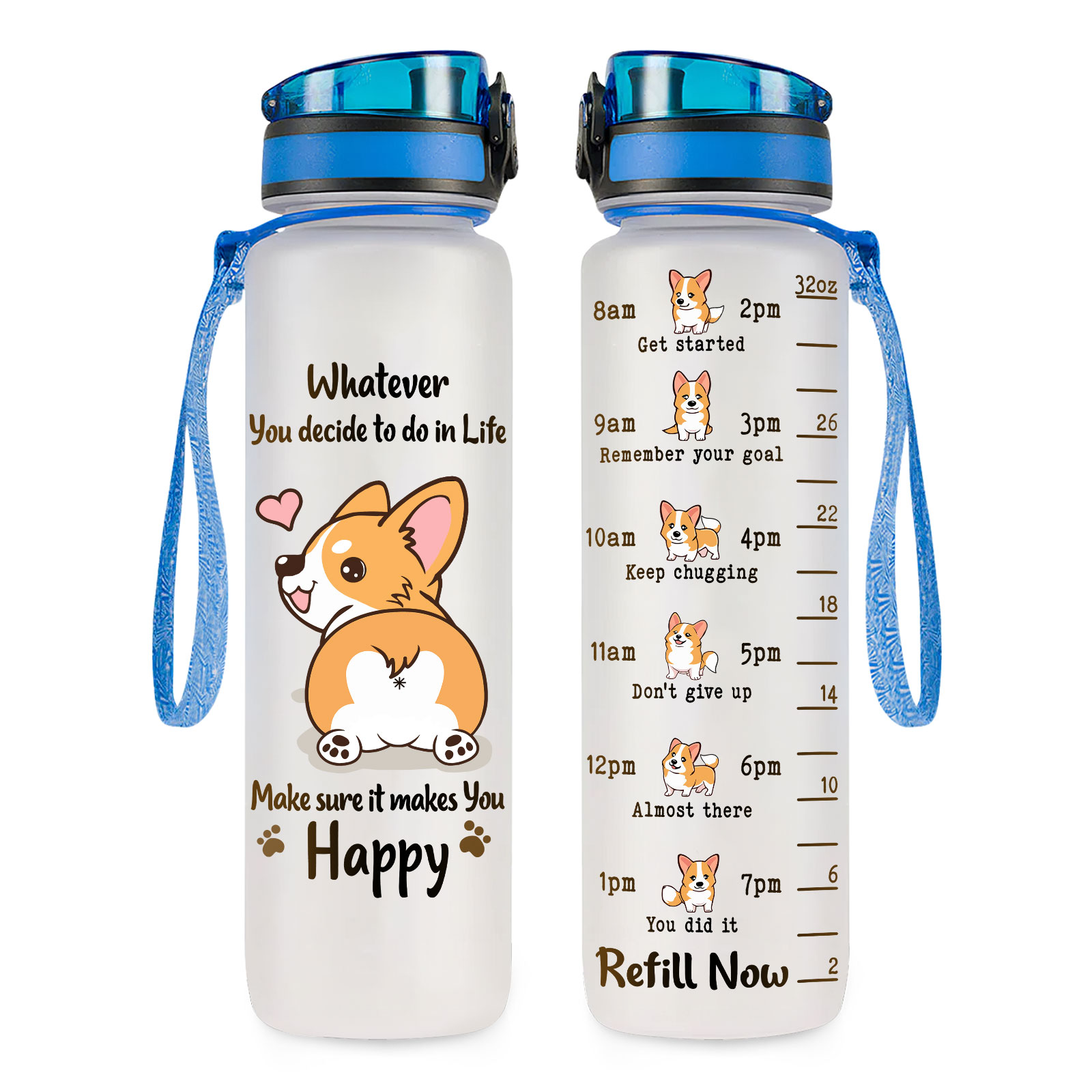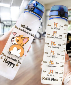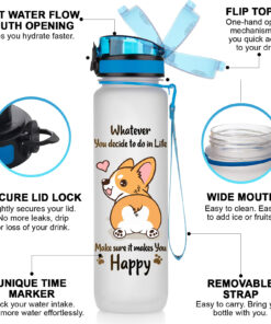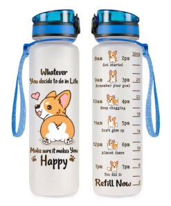 Time-Marked Water Bottle with Corgi Design